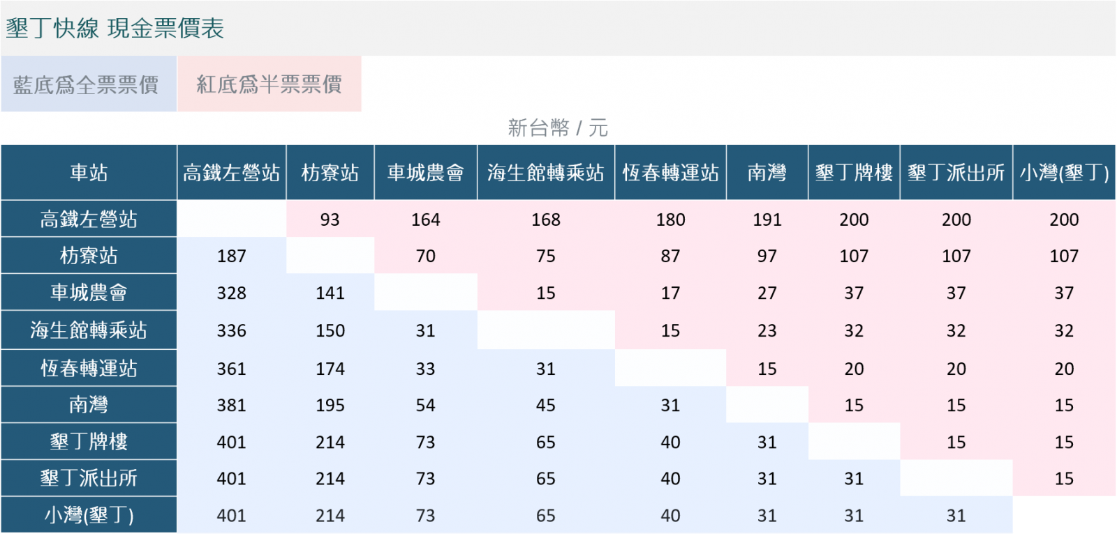 1.左營(yíng)<->墾丁優(yōu)惠來回票價(jià)600元、單程401元