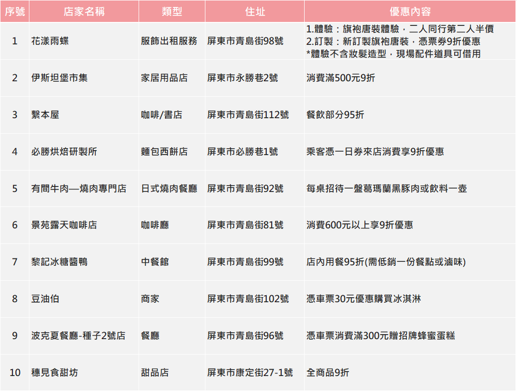 一日券優(yōu)惠合作商家(若有異動(dòng),依實(shí)際商家優(yōu)惠為主)