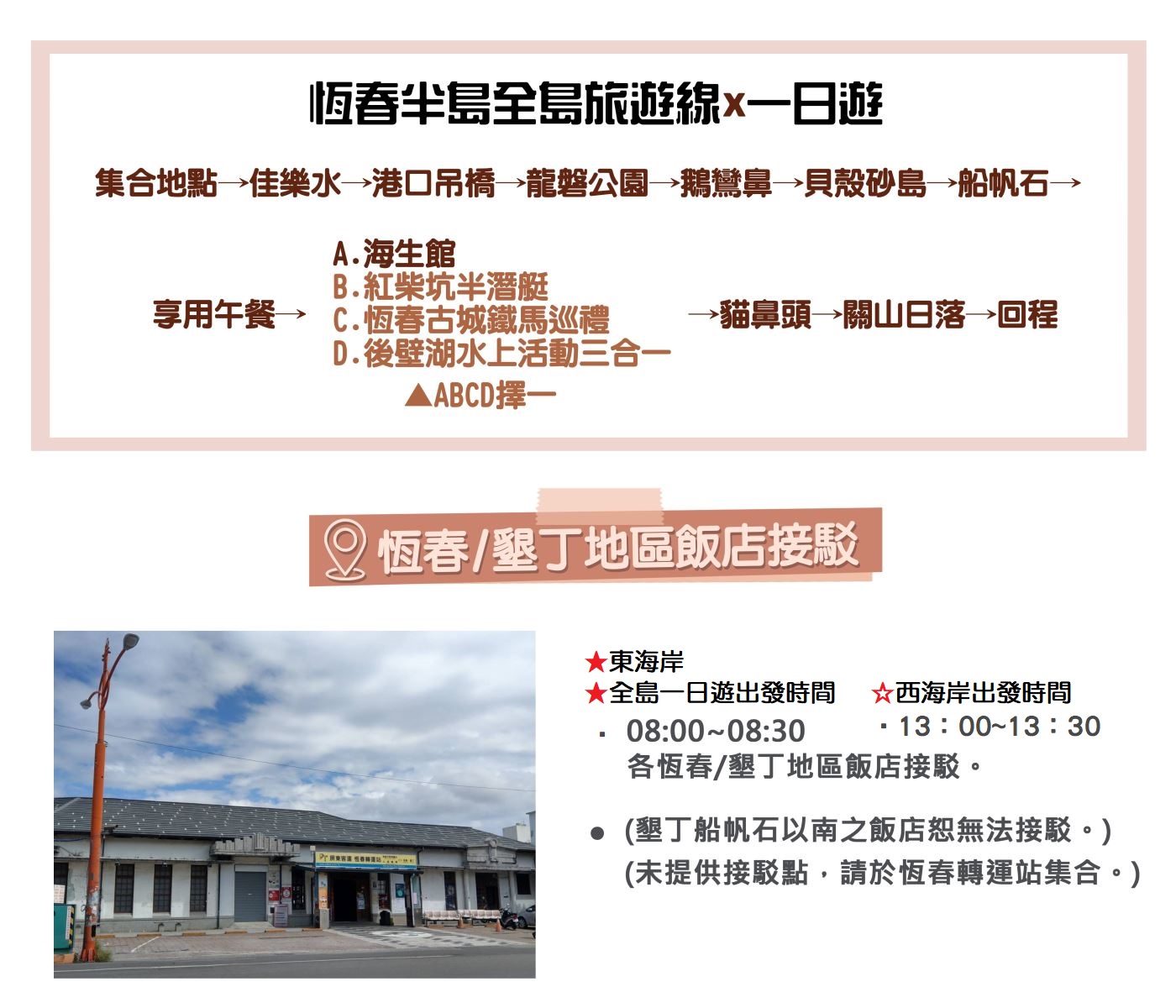提供恆春半島經(jīng)典行程四選一: