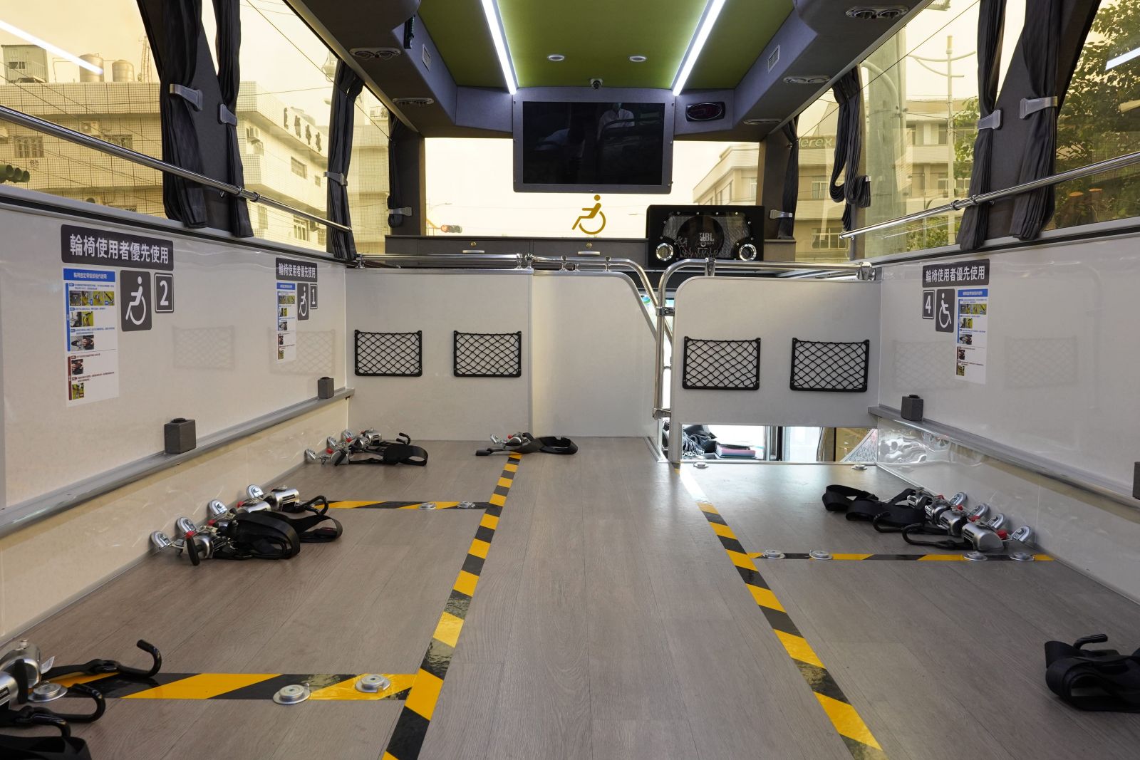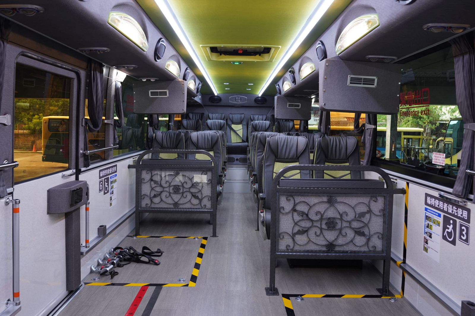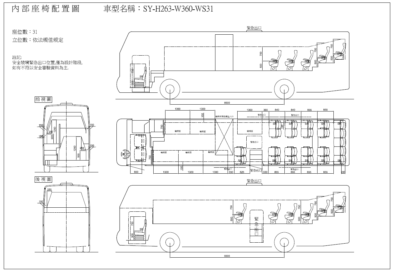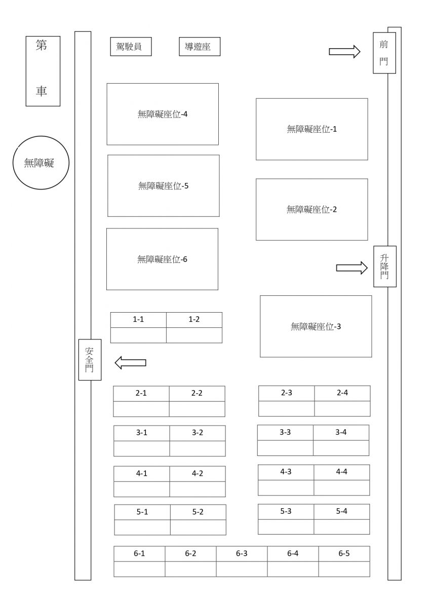 (一)配有6個輪椅席及23個一般席,共計29個席位(如車內(nèi)配置圖)。