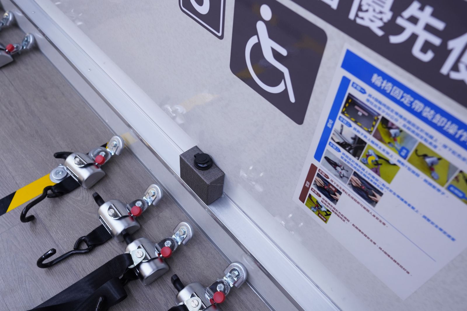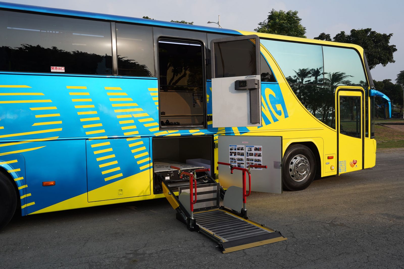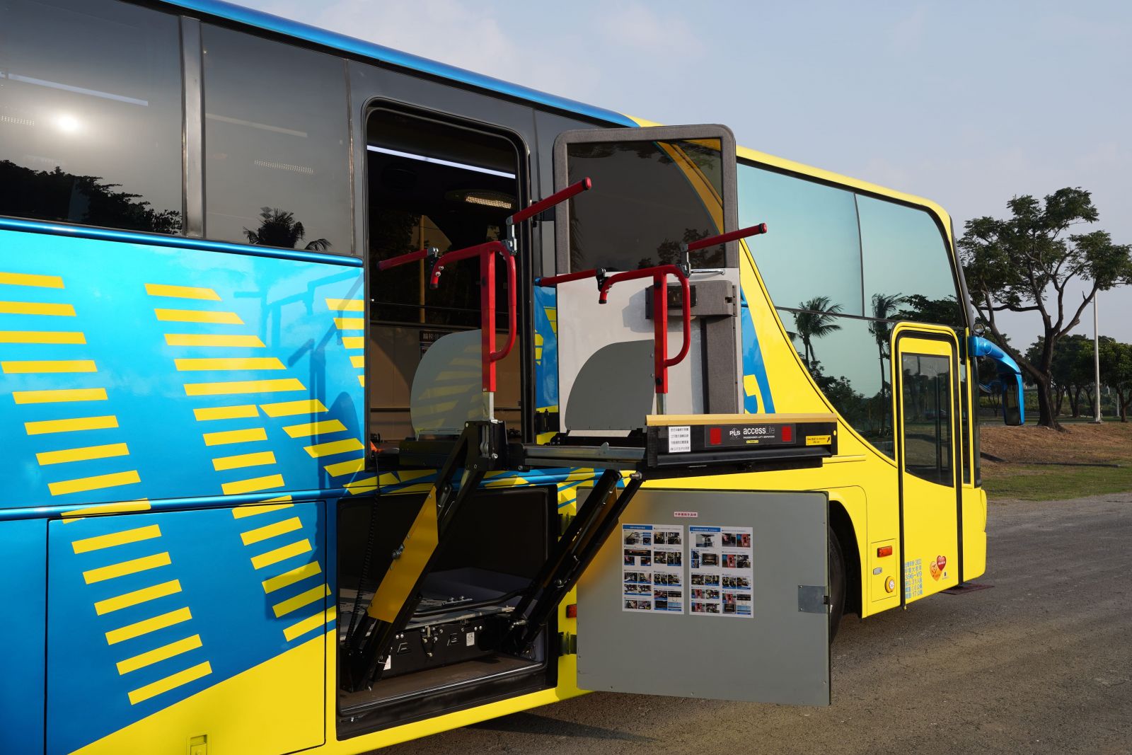 (二)配有1組符合政府相關(guān)規(guī)範(fàn)之身心障礙專用輪椅升降設(shè)備:乘載重量400kg、升降平臺尺寸:141公分x 82.5公分,故障時可改手動操作。