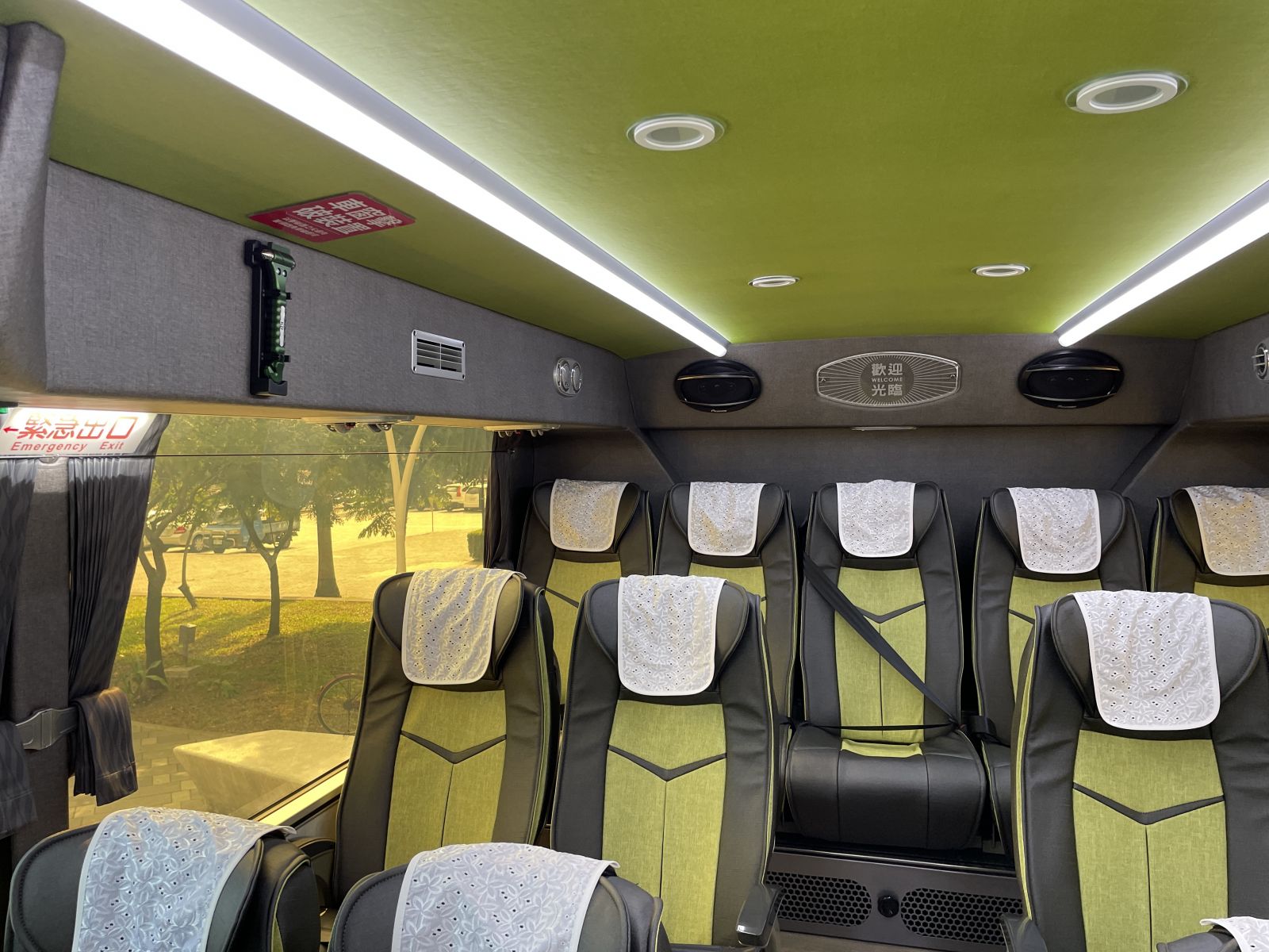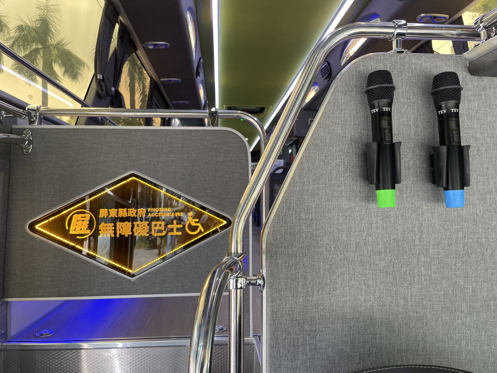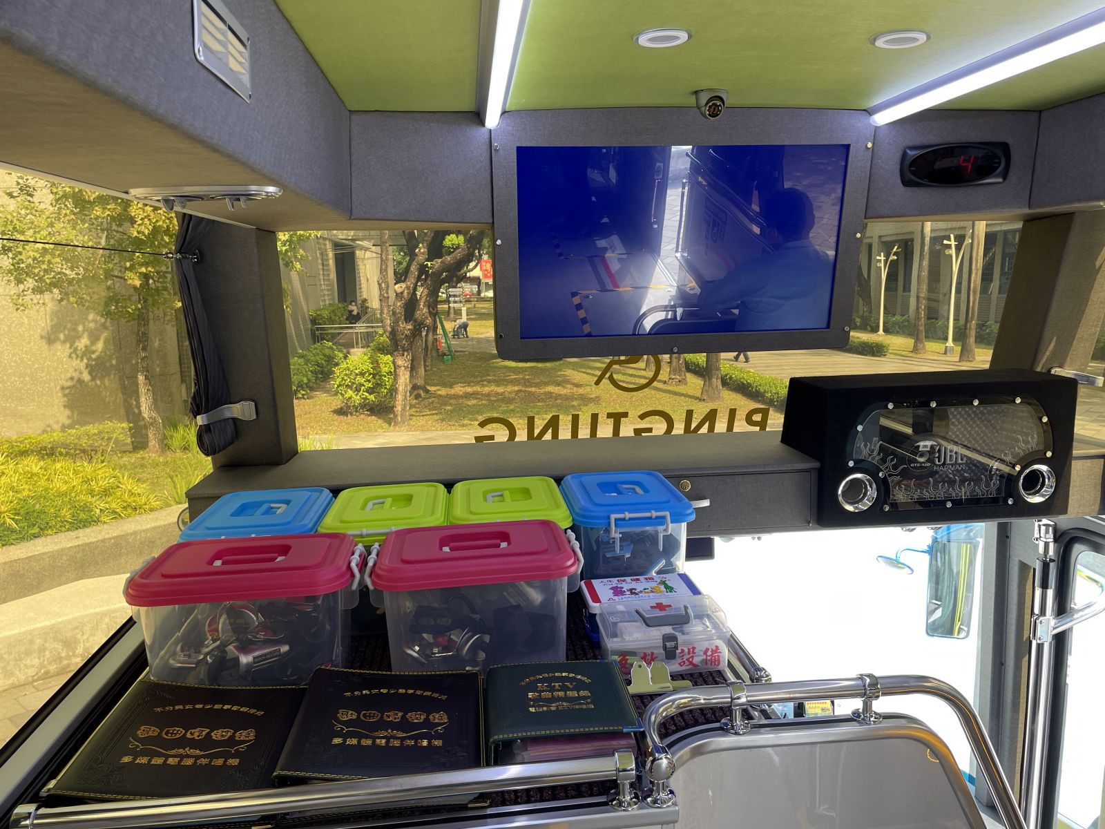 (三)影音設(shè)備:車內(nèi)前方1個37吋液晶螢?zāi)?、?後方配有3處22吋液晶螢?zāi)?、DVD播放器1臺、卡拉OK主機(jī)及音響喇叭、無線麥克風(fēng)。